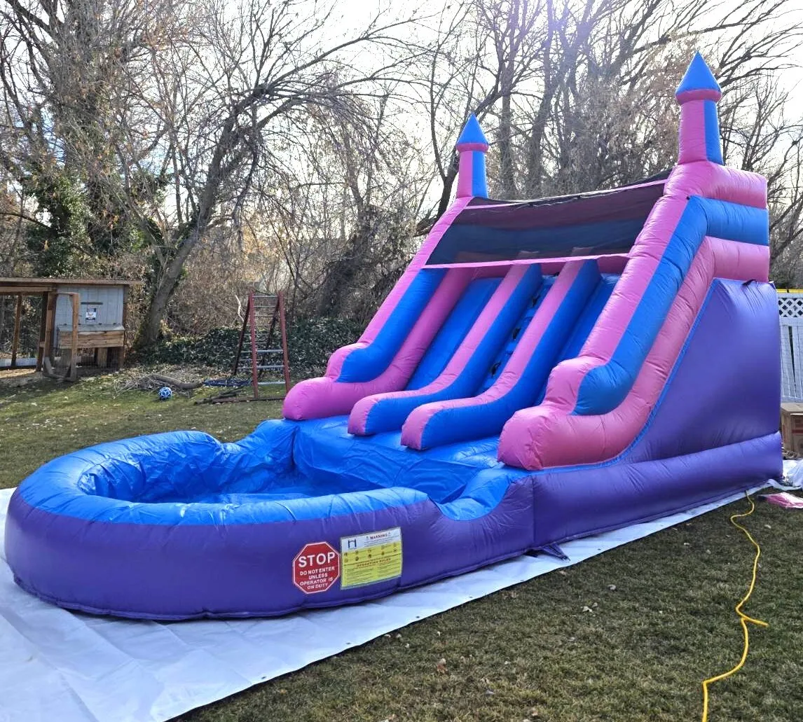 Make a splash with our 14' Double Waterslide, designed for double the fun and excitement. Its dual lanes let you race side-by-side for an exhilarating summer experience.
